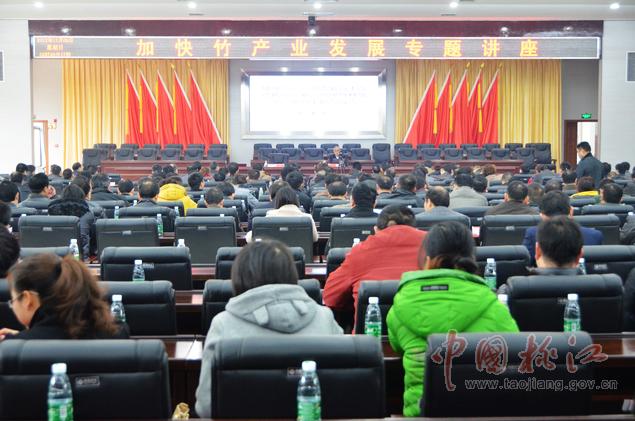 12月9日,黨政大樓附屬樓三樓會(huì)議室里,一場(chǎng)高規(guī)格的加快竹產(chǎn)業(yè)發(fā)展專題講座在這里舉行??h委副書(shū)記何軍田主持,縣領(lǐng)導(dǎo)唐學(xué)文、李質(zhì)彬、馬文才、陳震宇、胡國(guó)清、肖立新、張亮榮、劉武出席。副處級(jí)以上干部,縣直單位、鄉(xiāng)鎮(zhèn)負(fù)責(zé)人,林業(yè)系統(tǒng)工作者共400余人濟(jì)濟(jì)一堂,認(rèn)真聆聽(tīng)了中國(guó)工程院院士、中國(guó)竹子加工利用首席科學(xué)家、南京林業(yè)大學(xué)教授張齊生和國(guó)家林業(yè)局竹子研發(fā)中心科研處處長(zhǎng)、竹筍專家、高級(jí)工程師吳良如精彩而豐富的竹產(chǎn)業(yè)講課。